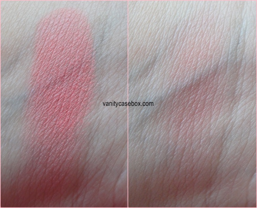 – The shade is a lovely warm pink shade with hints of coral and minus any shimmers! Matte blush! Score! It provides beautiful warmth to my face.