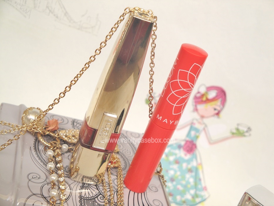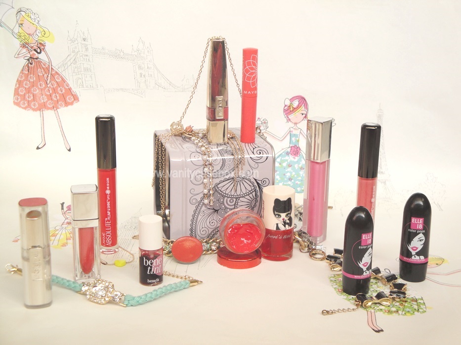7)Β Β Β Β Β Β Β Lakme Lipgloss “Crimson Shine” and L’oreal Caresse Lipstick “Dating Coral”