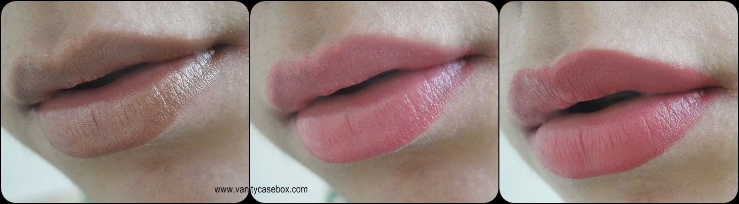 The lipstick comes in a black packaging and feels sturdy enough. The bullet runs over the lips smoothly, packing an opaque punch of colour in one swipe only. There’s no drag feeling. They provide a decent hydration to lips as long as they stay on. The frosty brown shade (Sun shine,33) survives light snacks and drinks, with a lot of colour still left on the lips. But the maximum it wears is for 3 hours. The pink shade (Ravishing, 59) survives a full meal and leaves a stain on the lips afterwards, which lasts for another hour or so. I actually fell for this subtle bright shade. Wear it blotted and it will look like you just ate a cotton candy! ๐Ÿ˜€ I louuuu this shade!ย