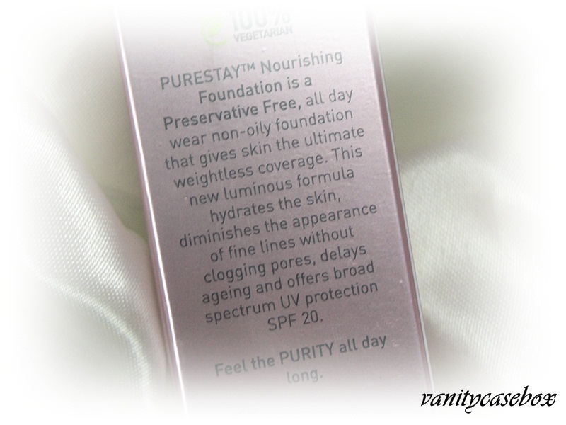 Purestay nourishing foundation is a preservative free, all day wear, non-oily foundation that gives skin the ultimate weightless coverage