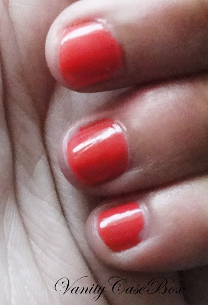 The brush is quite small and therefore, it results in uneven application many times. Also, I need 3 coats to get an opaque coverage. It takes a minute or so to dry.