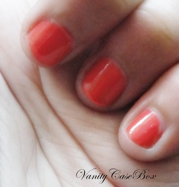 One of them is Elle 18 Nail Pops “52” which is a bright orange. The truest swatch of this nail color is in the first picture. This shade always brightens up my hands.