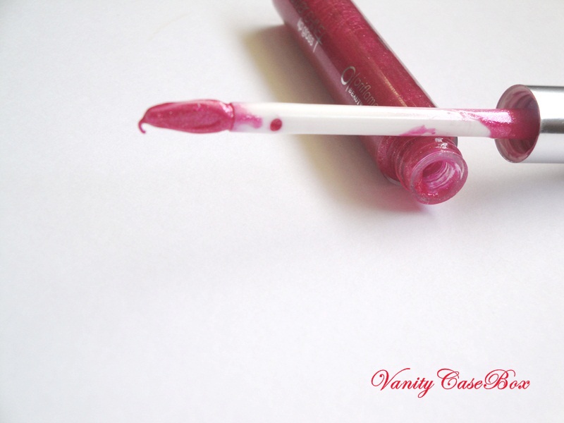Oriflame Power Shine Lip gloss comes in a glass packaging with a glossy silver cap. The wand of the applicator is like a cone shape applicator. I don’t know how companies keep coming up with such weird type applicator shapes. I wouldn’t say the wand does its best job at applying lip gloss but yes! It does.