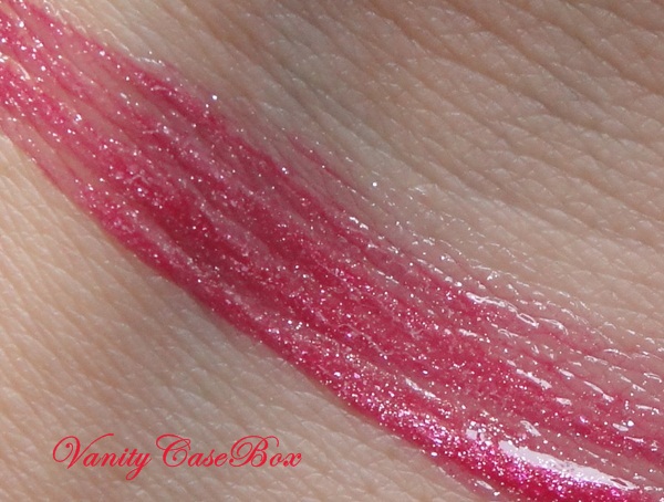 The shade is a Beautiful berry shade with lots of glitter and high shine but nothing that I find tacky. The scent is fruity types.