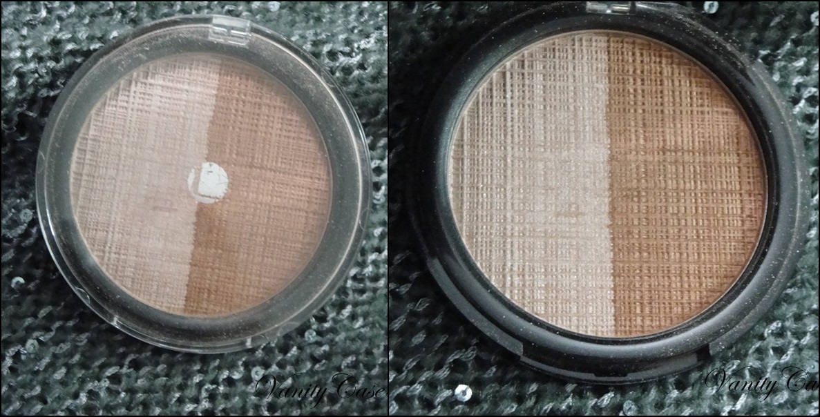 Lakme absolute highlighter has two shades: a vanilla coloured highlighter and the other is a golden bronze contour shade. I surely wouldn’t want to contour my face with a shimmer shade. It would have been great if this one was matte, and more light.
