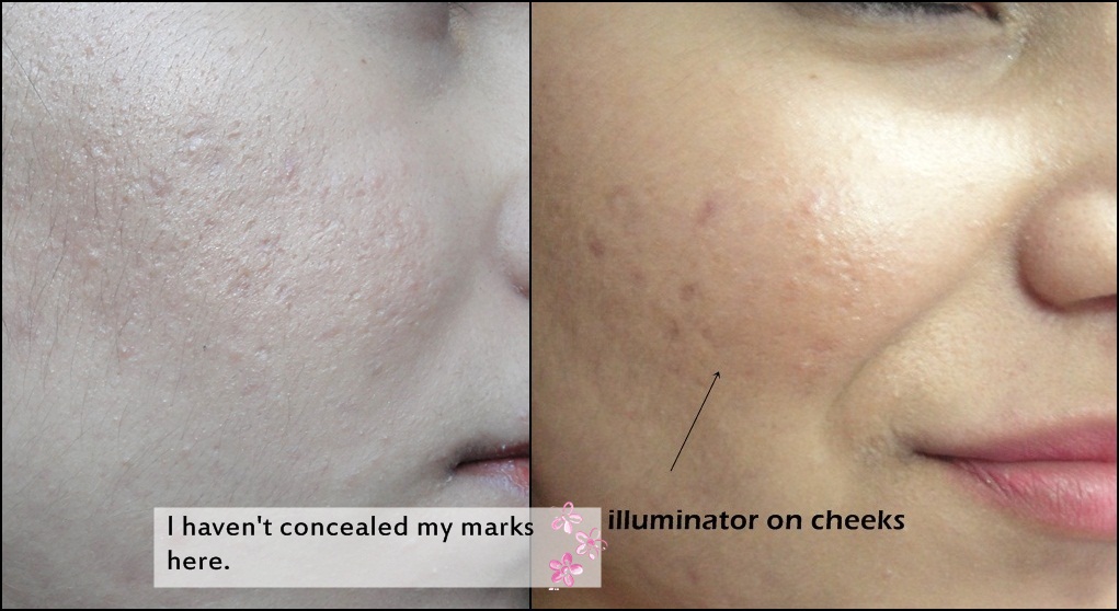 Well, the shimmer is chunky. I have a problematic skin with acne scars and open pores. The not so well distributed shimmer only emphasizes them. Girls who don’t have open pore problems will love this but for me, I have to first make efforts on my skin to make this work properly and nicely.