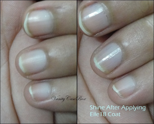 As a top coat too, it fares well. Without a top coat, my nails start to chip after soon. But with this as a top coat, my nail enamel stays on for much longer without chipping.