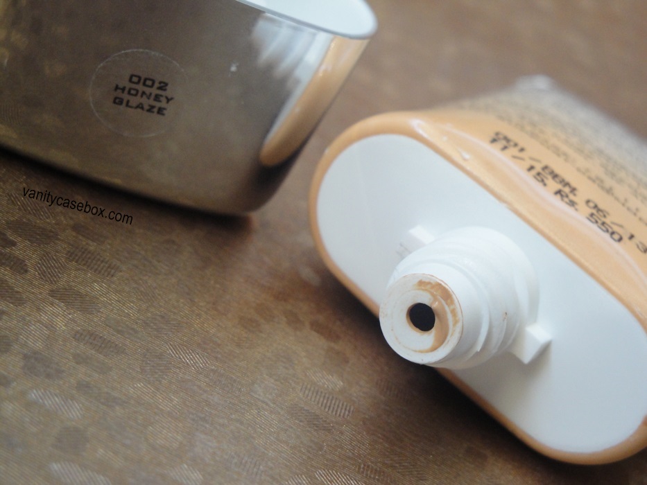 Now, the bummer is the shade selection again! The Colorbar SA matched me to this shade saying that it’ll adapt into my skin shade after a few minutes. I told her to swatch all the three shades. The 003 shade was too dark and the 001 wasn’t available at that time. But the SA convinced me into buying this saying 001 shade is very pink and this shade will transform into my skin shade. I believed her because there actually are some BB Creams that are meant to adapt to one’s skin shade.