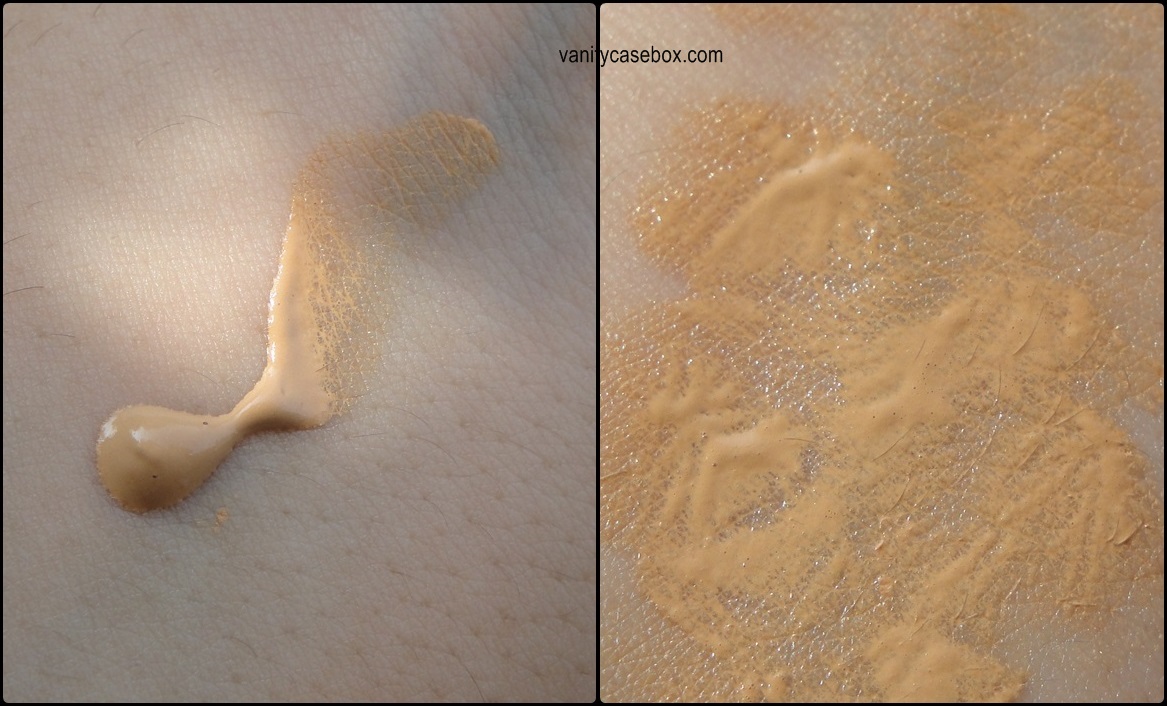 – The texture is very light. It feels water based and blends easily into skin with just a few pats.