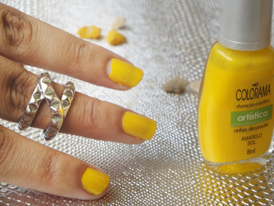 Maybelline Colorama “Amarelo Sol” is a very pretty bright yellow nail shade. It gets fully opaque in three coats and applies nicely. Although after some months, the formula thickens. It stays for around 3 days before it starts to chip. It dries quite fast although it takes a pretty good time for three coats to dry. The finish is quite glossy.