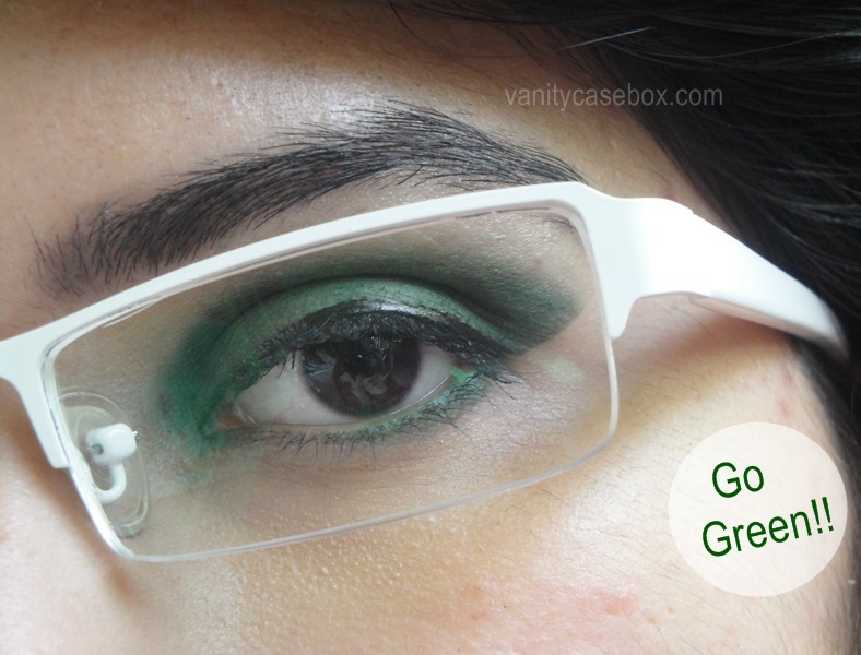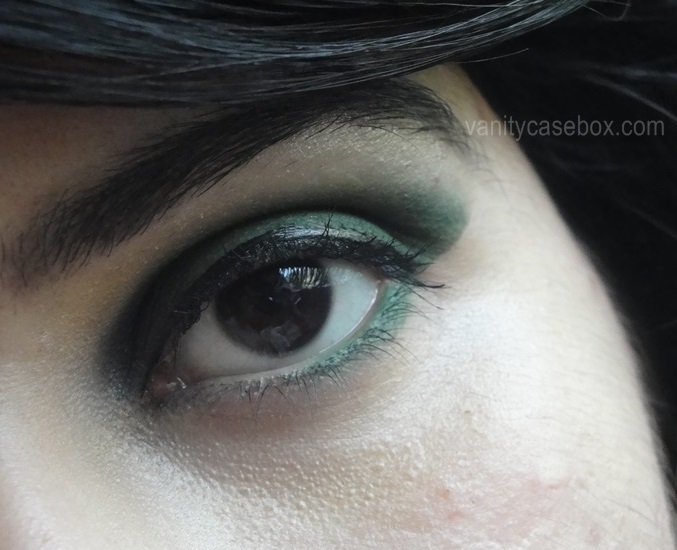 *Lightest shade on lower lash line, darkest forest green shade on outer lids, middle shade on middle eyelids and black on inner corners*