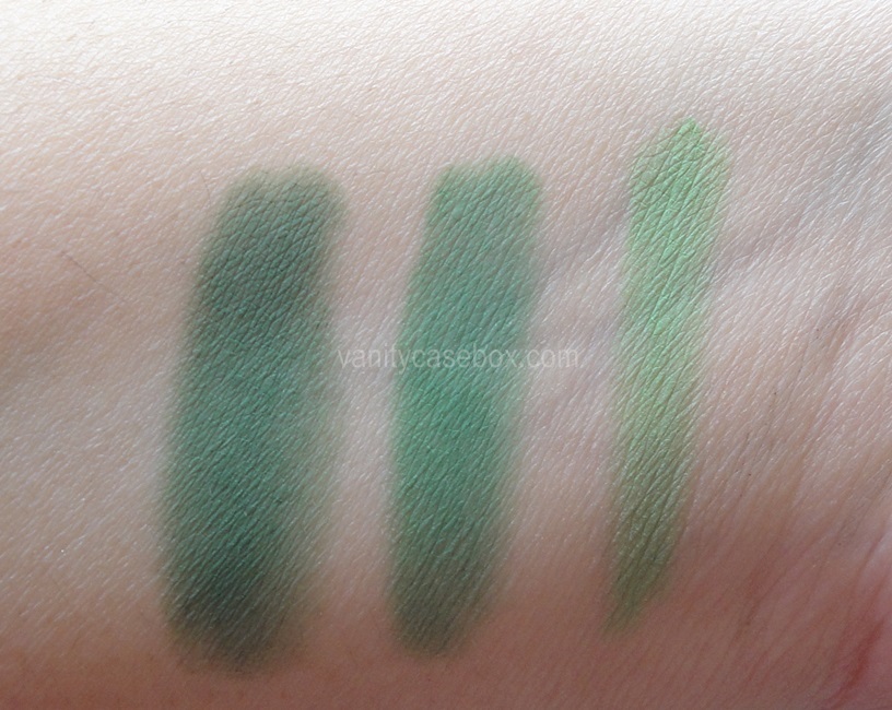 The reason is the pigmentation. Leaving the middle shade, I have to pack on the other shades quite more for a good color pay off on my eye lids. Even the swatches you see on my arm are using sponge tip applicators. I can hardly make the difference between middle and darkest shade on my eyelids. I have used the last and lightest green shade using a wet brush on my lower lash line. So, I will wear a primer next time I wear these to intensify the shades. Other than that, they score well in other aspects. Thetexture is smooth overall but the darkest shade has more fallout compared to the other shades. Tapping the brush does the job. Also, they blend easily since the texture is smooth. Packaging is an issue with the recent price hike but I’m glad that at least the box is provided.Β